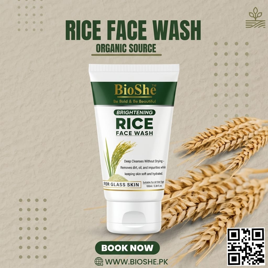 Achieve naturally radiant, smooth, and glowing skin with BioShe Brightening Rice Face Wash. Inspired by organic rice extracts, this gentle yet effective cleanser deeply removes dirt, oil, and impurities while maintaining your skin’s natural moisture balance.